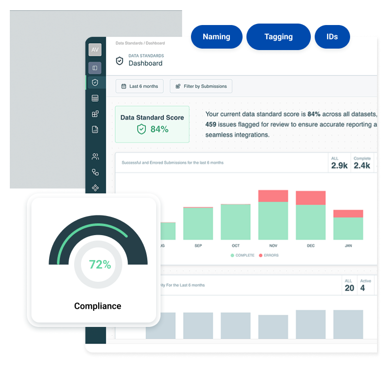 Access powerful metrics and insights into data standards adherence so you can prioritize and address gaps fast, speeding progress toward total compliance.